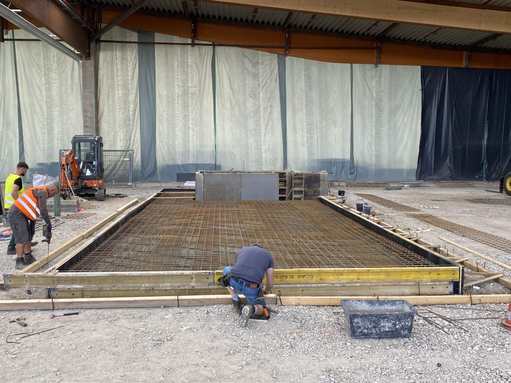 Die Baugenehmigung ist im November 2024 vom Kreis Herford erteilt worden. Die Ausführungsplanung in Gebäude, Statik und Haustechnik wie auch Außenanlagen ist erarbeitet worden. Momentan ist die Ausschreibung „Erweiterter Rohbau“ am Markt und es soll, sobald der Auftrag vergeben wurde, die Baustelle eröffnet werden.